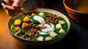 Nach dem Garen sollte der Flammkuchen etwa 1 bis 2 Minuten ruhen, bevor er geschnitten wird. Dies ermöglicht es der Creme, sich zu setzen. Frische Kräuter wie Schnittlauch oder Petersilie werden erst jetzt hinzugefügt, um ihre Frische zu bewahren. Ein Hauch frisch gemahlener Pfeffer rundet das Geschmackserlebnis ab.