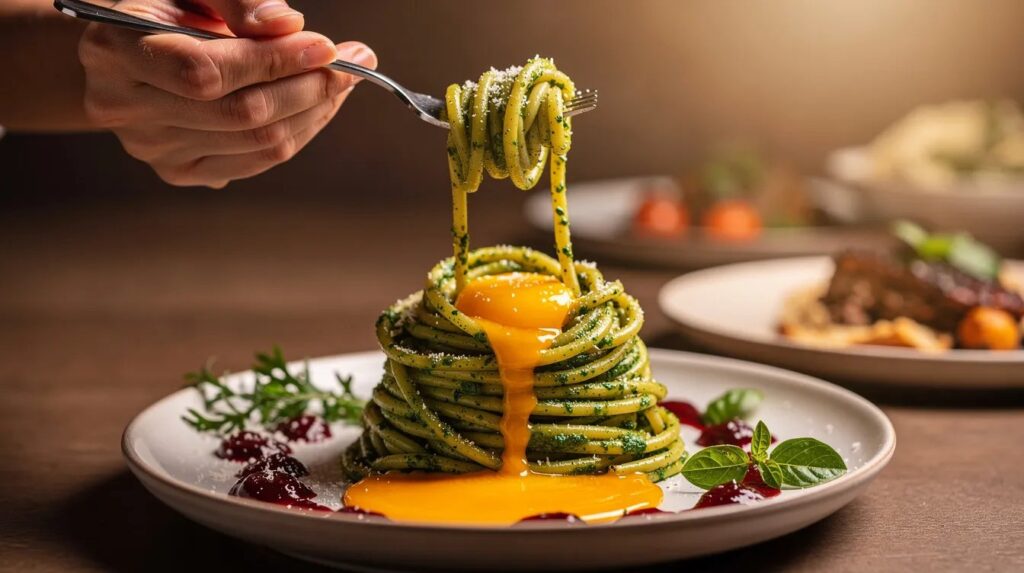 Die würzige Ei-Käse-Basis der Spaghettinester sucht nach einem Getränk mit Säure und Leichtigkeit, das die Fülle des Parmesans nicht noch verstärkt, sondern ausbalanciert.
